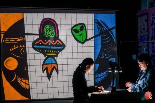 夜幕降临时,光影偶戏《寻狗记》接续点亮历史建筑空间。1台复古幻灯机、2位表演者、10幅景片、68只剪影偶,在古老的建筑间投映出飞船、太空服和宇宙的剪影,讲述充满想象力的“太空漫游”。