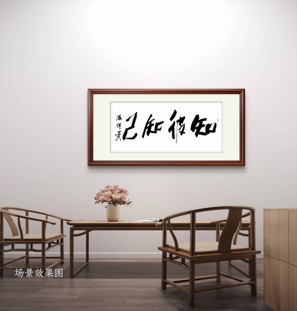 在个人书房,这幅书法更是精神的 “定海神针”。书房是个人沉淀思考、探索知识的空间,“知彼知己” 四字在此处,既呼应着读书求知的本质:通过书籍了解世界(知彼)、通过思考认知自我(知己),也能在人面临人生选择时给予指引。无论是学生面临升学压力,还是职场人遭遇职业瓶颈,抬头见此四字,便能想起审视自我、观察环境的重要性,在迷茫中找到方向,以理性态度应对人生挑战。