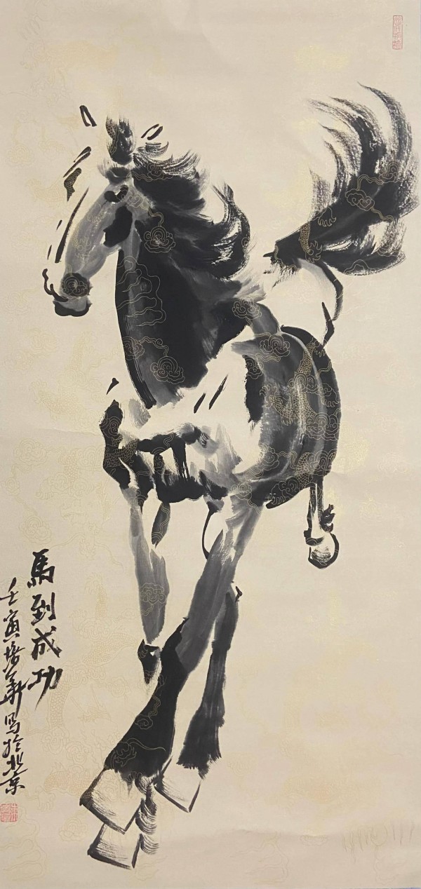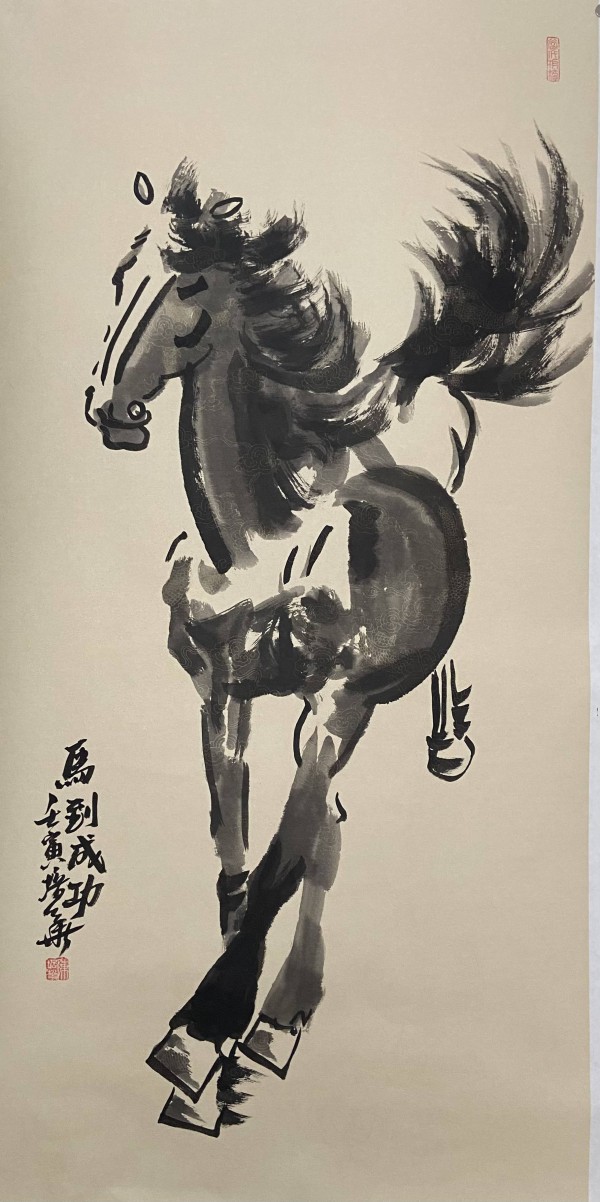 题材拓展:他不局限于传统的画马题材,而是将马与不同的场景、文化元素相结合,拓展了马画的表现领域。比如他会创作马与自然景观相结合的作品,展现出马与大自然的和谐共生;也会将马与历史故事、神话传说相结合,赋予作品更深层次的文化内涵。
