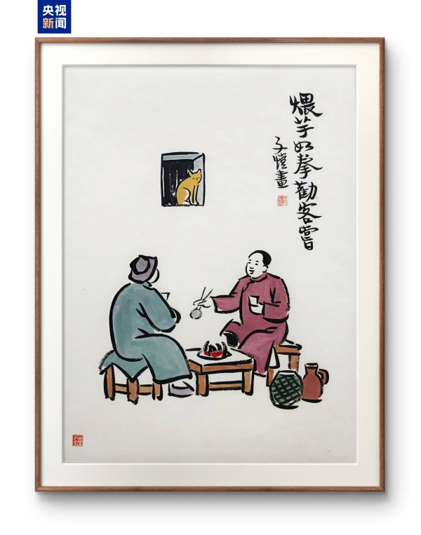 由中国现代漫画鼻祖、散文家、文学家丰子恺先生创作的漫画《煨芋如拳劝客尝》,以寥寥数笔勾勒烟火人间,在寻常茶事中流露温润仁爱的文人情怀。