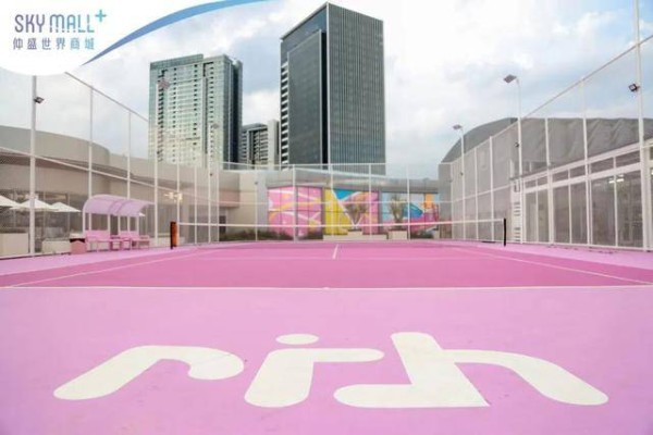 5F的“SKYPARK”空中街区作为仲盛改造的亮点,不仅有Simple Fit简单健身的千平露台,还有上海首家空中网红粉色羽毛球+网球中心,共同打造仲盛“地面健康绿色轴线”的核心亮点。