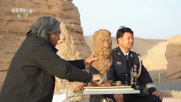 雅丹国家地质公园现场,吴为山以笔墨勾勒雅丹地貌的雄浑风骨,再以泥为媒,为扎根大漠二十余载的“全国最美基层民警”李生寿现场塑造雕像。雅丹国家地质公园内有全国唯一一所大漠“窑洞”派出所。作为雅丹派出所原所长,李生寿在罗布泊边缘完成198次救援,救回26个生命,用忠诚与担当书写着基层民警的初心使命,让“全国公安系统二级英模”“全国最美基层民警”“甘肃最美人物”的先进事迹深入人心。傍晚时分,大漠塞外户外温度降至接近零度,艺术家的双手已近乎冻僵,为创作增加了难度。但吴为山凭借艺术之力,让平凡英雄的精神有了可触摸、可传承的实体形态。