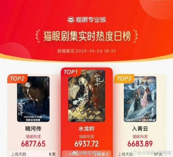 罗云熙水龙吟开播30分钟登顶猫眼剧集热度日榜top1,这水平怎么样?看到的朋友来说说好看吗?