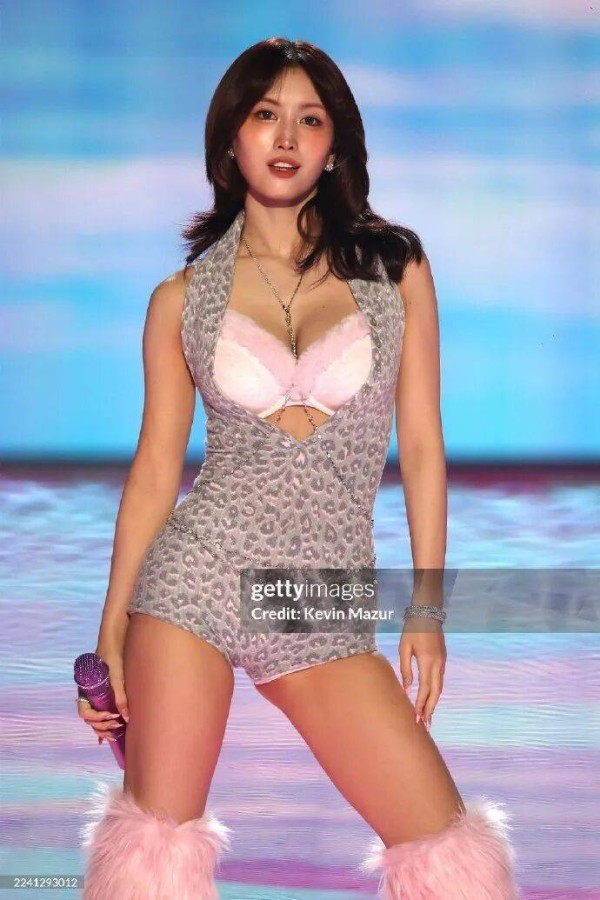 MOMO的条纹外套配内衣造型堪称神来之笔。红毯上她踩着猫步经过镜头,弹幕瞬间被"妈妈级美貌"刷屏。等她换上维密招牌翅膀登台时,透视背心与工装裤的混搭又掀起第二波高潮。这个把性感与帅气糅合成化学方程式的女孩,在《Strategy》的旋律里完成三次卡点转身,每个动作都精准踩在观众肾上腺素飙升的节点上。