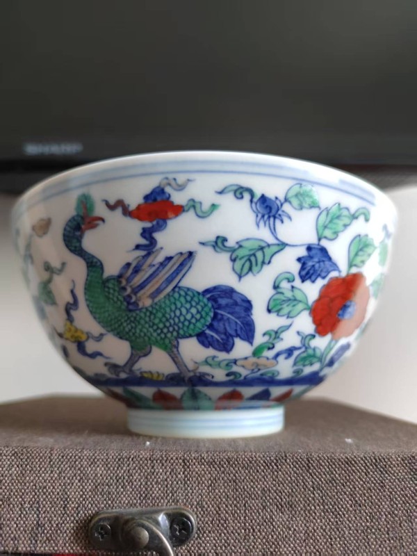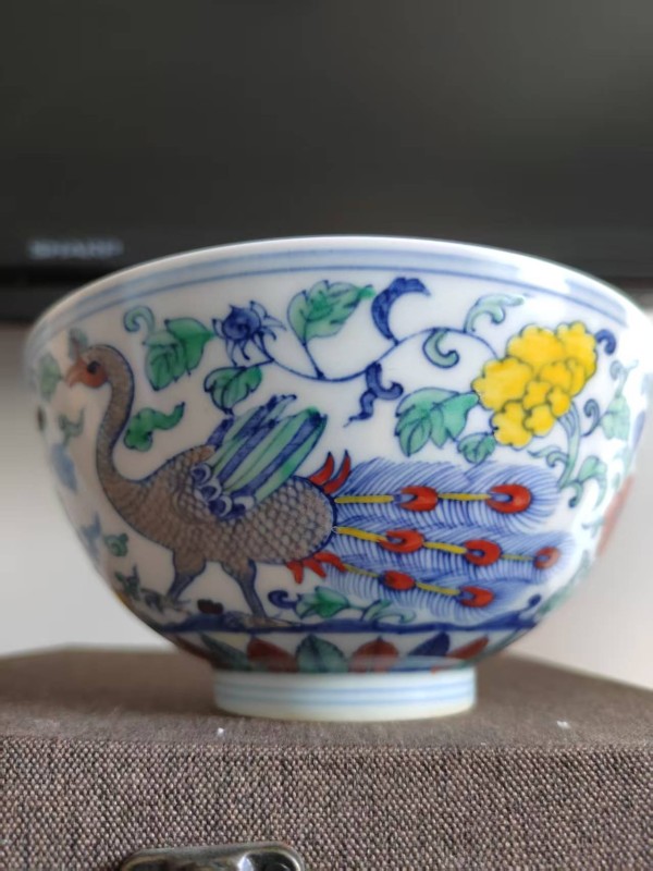 成化斗彩在收藏市场中一直是 “顶级硬通货”,这件孔雀牡丹纹大碗更是其中的稀世珍品: