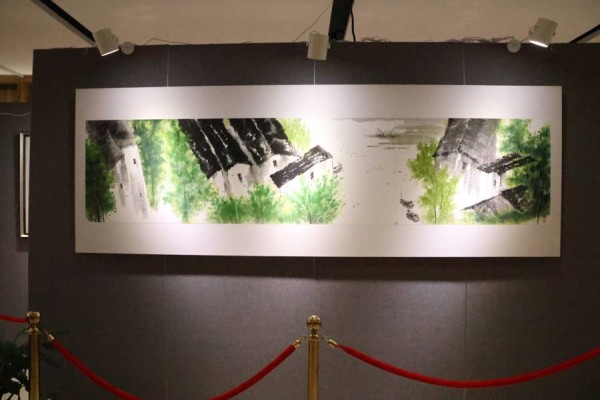 在展品中,江南特色的临水青瓦房、水乡景致、湖面游船与水鸟相映成趣。代表作《江南》采用纸本彩墨的形式,既有传统国画的水墨蕴藉,又有现代艺术的诗性呈现,让水墨画在坚守文化本源的同时焕发时代活力。