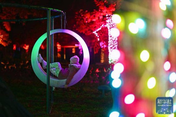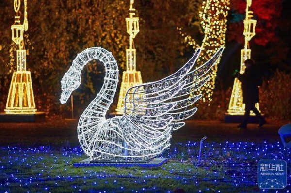 ↑这是10月25日在波兰华沙市郊的波兰科学院植物园“光之花园”灯光展上拍摄的彩灯造型。