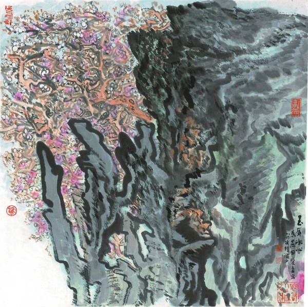 关于艺术家陆俨少(1909-1993)又名砥,字宛若。上海嘉定人。自幼嗜画,后从冯超然学山水,曾大量临摹清六家等人作品,笔墨功底坚实。平生好游名山,抗战时期挈家入川,饱览巴山蜀水,对三峡险水云走浪激之势观之最详,咸纪心目。1962年起在浙江美术学院兼课,1977年正式调入,历任上海中国画院画师、浙江美术学院教授、中国美术家协会理事、中国画研究院院务委员、浙江画院院长、浙江山水画研究会会长等职。陆俨少擅长山水画,作画尤喜从小而大,笔笔生发,因势利导,丘壑无穷。晚年好以"留白"、"墨块"之法表现名山大川吞吐开合之万千气象,章法奇特险绝,用笔变幻入神,不可端倪。间作梅花,有高古幽峭之韵味。又工诗文,善书法,主张中国画创作应三分画画、三分写字、四分读书。有《山水画刍议》、《陆俨少画集》等行世。陆俨少是当代著名的中国山水画大师。