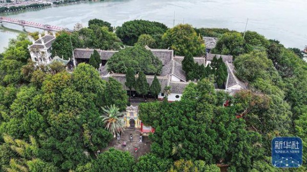 ↑ 10月27日,游客在重庆奉节白帝城景区参观(无人机照片)。新华社记者 刘潺 摄