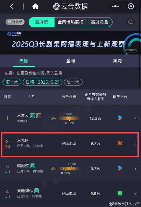 #水龙吟云合逆跌# 这就是数据说话的底气,#水龙吟# 值得!好久没看过这么上头的剧里,今晚剧情非常精彩,唐俪辞与余泣凤在天焱剑壁大战,与此同时沈郎魂、池云、钟春髻、余负人、雪线子和古溪潭齐心协力拯救百姓,就是这个群像燃起来了!