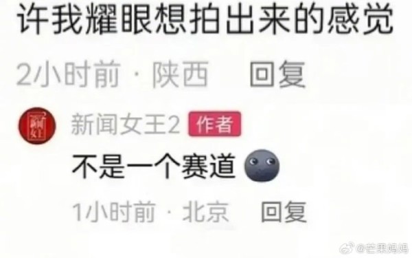 #新闻女王道歉##新闻女王 许我耀眼#许我耀眼在这场闹剧中没有挑事,也没有做错任何事情吧,剧播完了平白无故被拉出来对比,变成全自动挨骂了,本来也就不是同一个赛道的,只不过都有新闻主播这个人设,皮下偏偏挑了这条评论回复,而且还加了个黑脸表情,多少有点阴阳怪气的意思了吧
