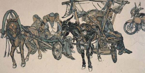 《赶车的人》纸本设色 248×480cm 2014年