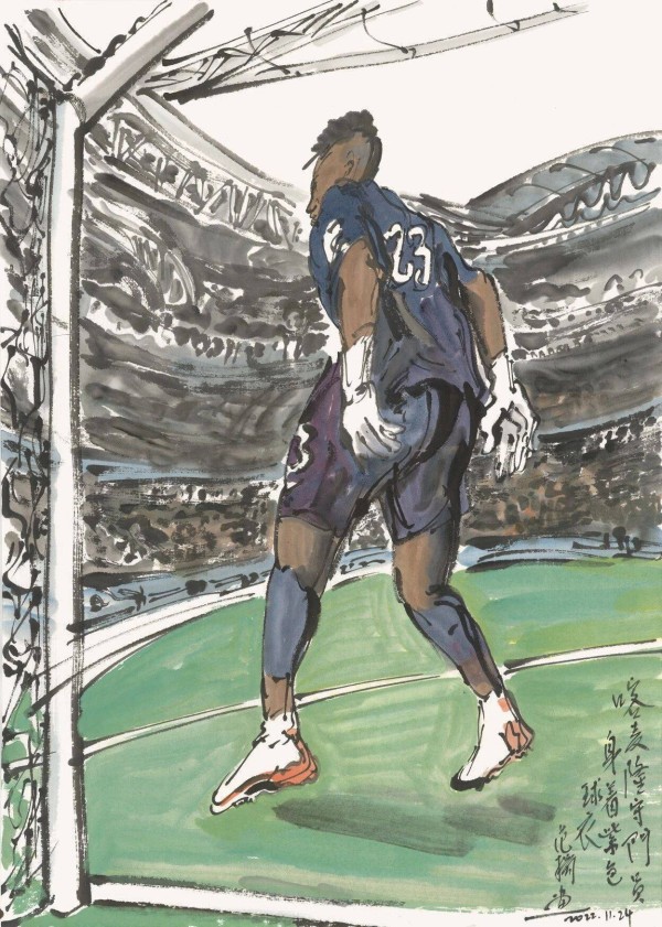 《喀麦隆守门员》纸本设色 49×34.2cm 2022年