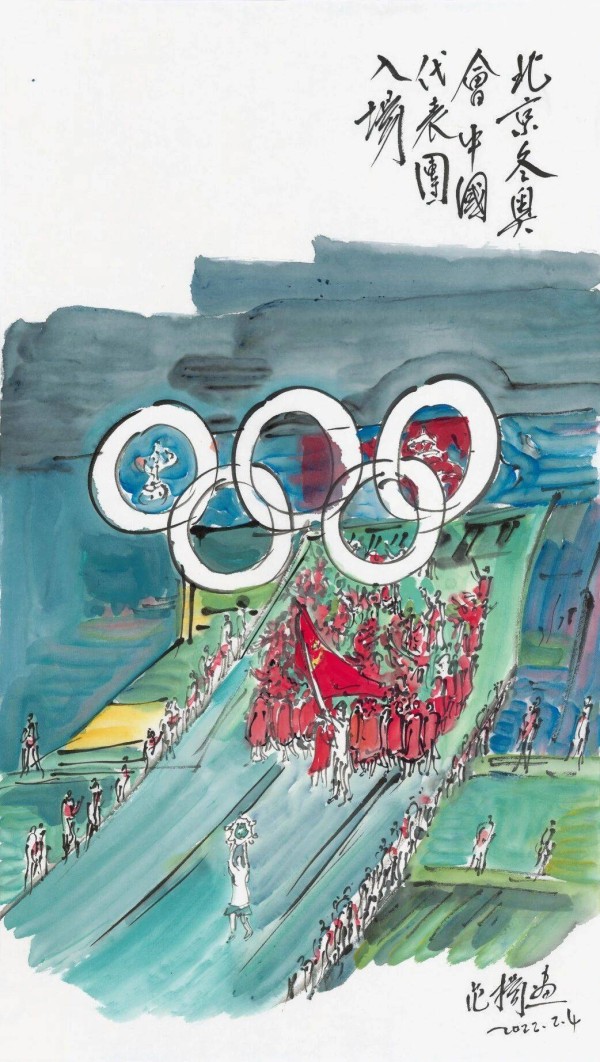 《北京冬奥会中国代表团入场》纸本设色 62.5×35cm 2022年