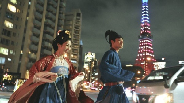 快闪活动中,2位年轻演员分别身着《太平年》与《家业》的剧中精美服饰,漫步在东京街头,演绎了一段跨越时空的动人故事。他们身着唐制汉服和明制汉服,打卡了晴空塔、东京塔、银座、涩谷等地标场景,荧幕上的中式古典美学零距离呈现在公众面前,吸引众多市民与国际游客驻足合影赞叹。