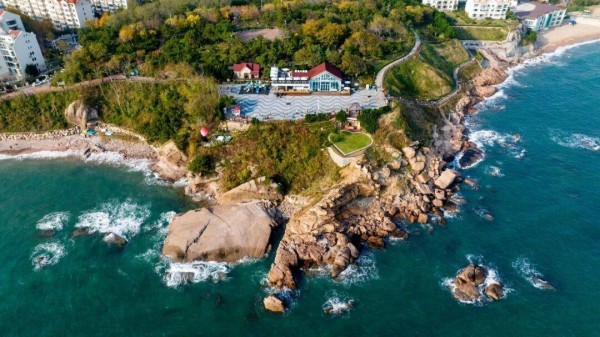 夕阳西下,第三海水浴场的庭院灯火璀璨。