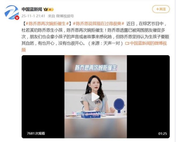 陈乔恩直言“我不生孩子,我现在过得很爽”,再次婉拒催生