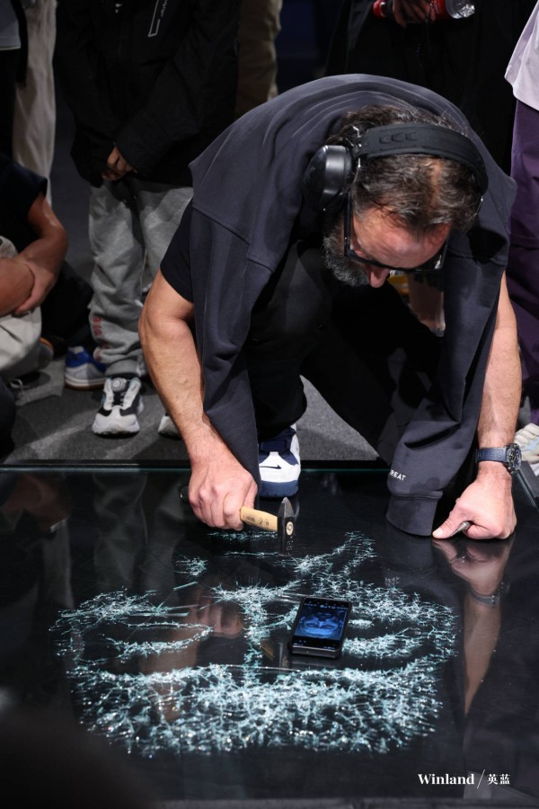 站在一块巨大的安全玻璃前,西蒙·伯格手持锤子,目光专注。随着他富有节奏的敲击,玻璃表面逐渐裂开细密的纹路——生长的树枝、流淌的河流、略过天空的候鸟翅膀……在他看来,这些自然的形态寓意着力量、生命力与蜕变。策展人福里安·保罗·克尼希站在一旁,解释道:“因为有时候你必须打破一些东西,才能重新建立起来。”这句话,不仅是对伯格艺术实践的概括,也是这次展览“破·立之间”的精神内核。