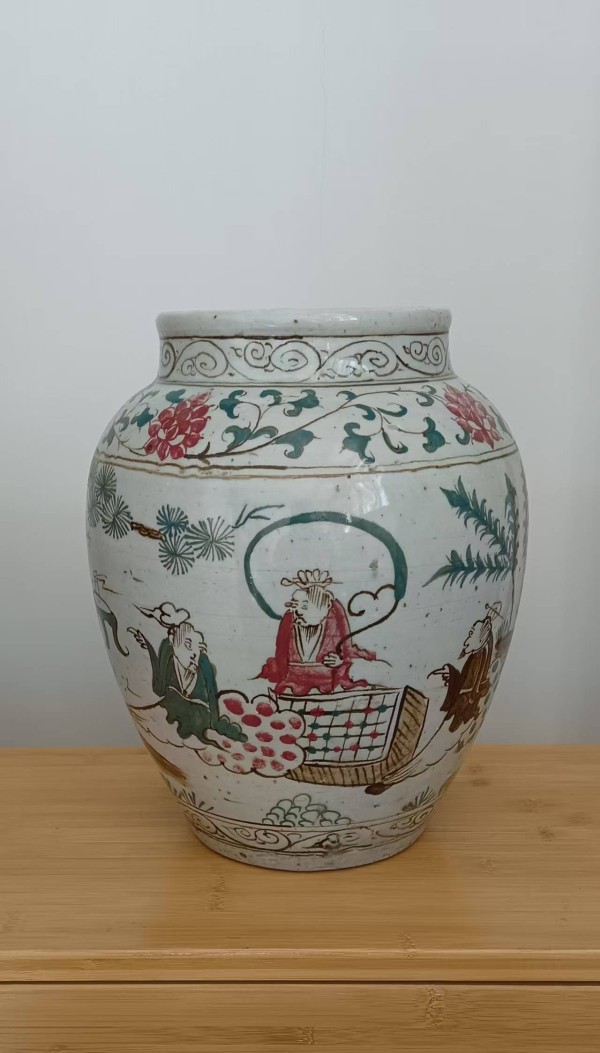 对于收藏与鉴赏者而言,这件五彩对弈人物纹罐可从以下维度品读: