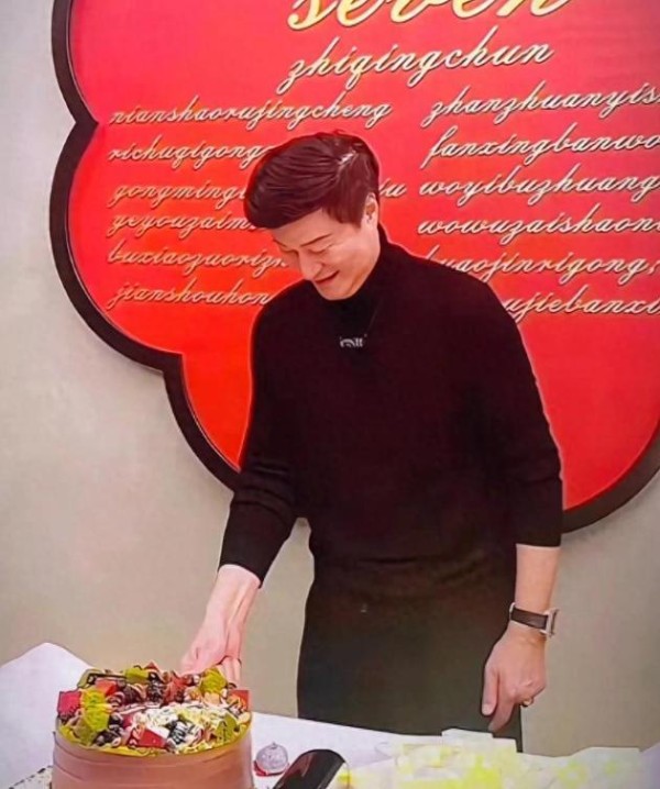 范涛站在蛋糕前准备切刀,一身黑色毛衣配同色系裤子,版型利落又显精神,完全看不出是奔八的人。最绝的是他那头发,乌黑浓密得连发际线都没后移,跟旁边年轻人比都不落下风。