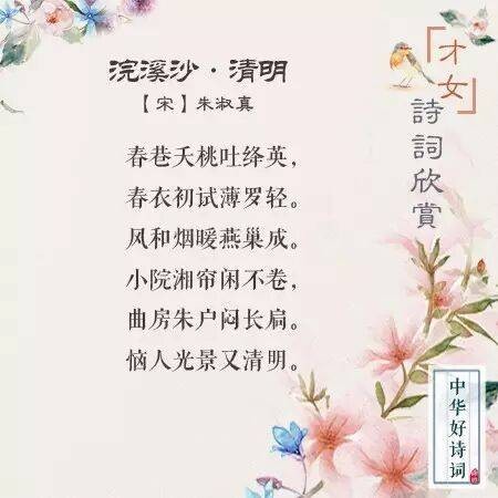 淑真(约1135~约1180),号幽栖居士,南宋著名女词人,是唐宋以来留存作品最丰盛的女作家之一。现存《断肠诗集》、《断肠词》传世,是劫后余篇。