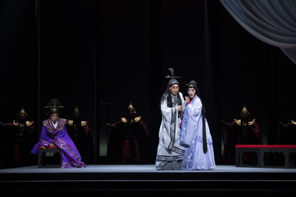 值得一提的是,《大汉母子》首次恢复使用上党铜器——上党平锣、上党钗、上党小锣,实现武场音乐的本真回归。唱腔设计秉持传统古典风格,突出上党梆子高亢激越的艺术特色,梆子声急促而起,精准传递人物幽微复杂的内心世界。全剧坚持回归艺术本体,强调剧本文学性,突出表演核心,舞美空灵写意,在“双寡夜辩”等关键场次中迸发强烈戏剧张力,揭示古代女性在权力漩涡中的困境,营造出浓郁的“莎士比亚式”悲剧氛围。