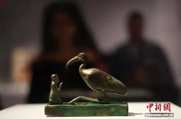 当地时间11月4日,观众参观纽约大都会博物馆《神圣的埃及》特展,这是大都会博物馆十多年来规模最大的古埃及展览,包括百余件馆藏作品,以及近百件从其他博物馆和机构借展的藏品。展览将持续至2026年1月19日。图为化身为朱鹭的托特神像吸引观众目光。(采编:徐阳光)