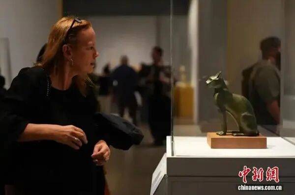 当地时间11月4日,观众参观纽约大都会博物馆《神圣的埃及》特展,这是大都会博物馆十多年来规模最大的古埃及展览,包括百余件馆藏作品,以及近百件从其他博物馆和机构借展的藏品。展览将持续至2026年1月19日。图为观众参观木乃伊猫。