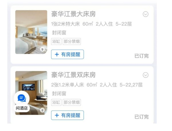 就连节前几天,普通江景房也涨到千元以上,页面上全是“已订完”“设置房源提醒”。