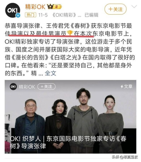 王传君东京电影节获影帝,网友齐刷我不喜欢