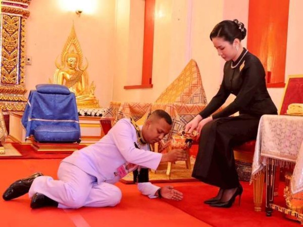 头发精心盘起,透着股优雅劲儿。再配上那红底黑色高跟鞋,整个人妩媚得不行。这颜值,简直绝了,几乎找不出死角,比好多泰国女明星都好看太多啦!不得不说,泰王这次这品味,可算是靠谱了一回哟。