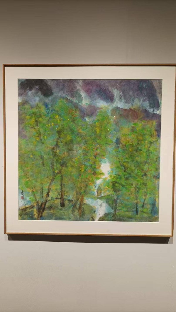 今天在“阅见西湖”二楼的展厅里看史春波的花花世界,好多画面我太熟悉了——在浙江日报社钱江晚报·潮新闻文娱工作室里,他的办公桌就在我工位后面,这些斑斓的丙烯、颜料还没干的时候,我就见过它们制造的烂漫花枝。