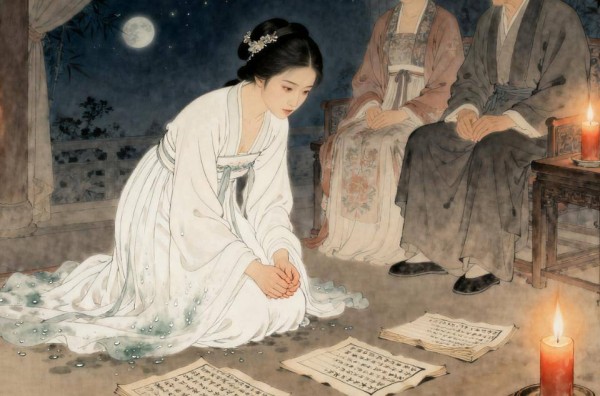 苏文轩和林婉清也吓了一跳,连忙分开。苏文轩看着父母,心里很紧张,他知道,事情败露了。他深吸一口气,走到父母面前,跪下说:“爹,娘,对不起,我们骗了你们。她不是婉柔,是婉清,一切都是我的错,你们要罚就罚我吧,不要怪婉清。”