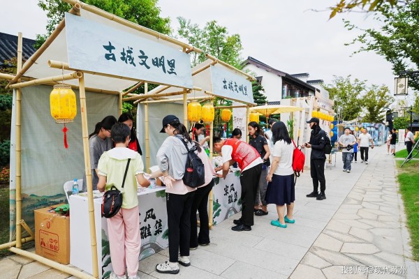 今年,吴门桥街道携手多部门举办的这场以“寻月织梦·石湖福缘”为主题的第八届“石湖串月”大运河姑苏民俗文化活动,让市民游客耳目一新。特别是“寻月之旅”集章打卡项目,参与度极高。在渔家村东门领取专属集章卡,前往市集及“兔子花灯”“诗月长廊”等艺术美陈前打卡拍照盖章,集满后可兑换主题纪念品。“宋韵巡游”情景互动中,NPC扮演宋代历史人物与花神,沿预设动线进行巡游,还能欣赏“弦歌映月”评弹快闪,这场石湖秋日雅集,让人爱了。
