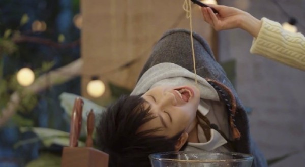 #第一次见敖子逸这样吃面的# 谁看了不笑,@陈瑶Sebrina 做好凉面给@敖子逸 尝,敖子逸直接歪头去接面,把陈瑶都惊到了,也是耍上“功夫”了~#水龙吟#