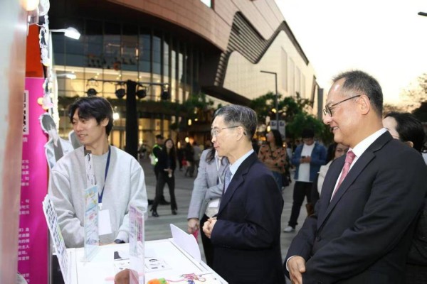 开幕仪式后,嘉宾们一同欣赏了中韩古筝与小提琴的精彩演奏,东西方乐器的和谐共鸣,恰如两国文化的交流互鉴。周汉民与金英俊一行巡视各展台,并与在场的韩国留学生进行了亲切交谈。