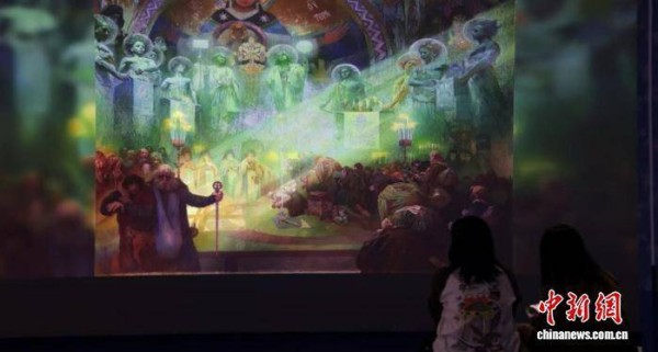 大型历史油画系列《斯拉夫史诗》沉浸式光影体验。广州K11 供图