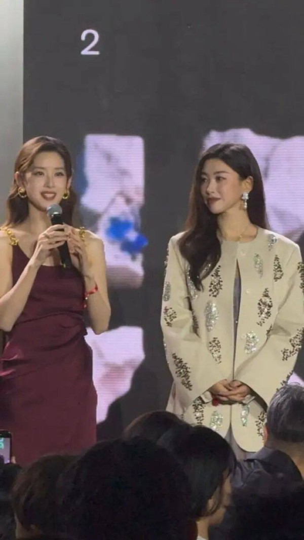 现场,31岁的章泽天穿着一袭吊带礼服,妆容精致,侃侃而谈;41岁的朱珠则身着白色服装,露出温文尔雅的微笑,展现出优雅的气质。两人站在一起的画面,气氛和谐,展现出不凡的风采。