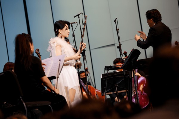 从演奏者到创作者的蜕变,马晓辉始终以新鲜、时尚的语言解锁二胡的多元魅力。音乐会下半场,她带来多首自编创作品:处女作《琴韵》是为恩师王乙教授所赠“小中胡”而作,古朴深情的旋律中融入琵琶、古筝技法与印象派音色,琴声、哼鸣与泛音交织,既藏着对恩师的感恩,更探索了二胡的音色边界;压轴登场的同名新作《弦咏世界》,则让二胡与管弦乐展开跨越时空的对话——阿炳《二泉映月》的清辉、《月亮河》的烂漫、肖斯塔科维奇《第二华尔兹圆舞曲》的激情在此交融,“如三幅音画,让东西方音乐灵魂在心弦上共鸣。”马晓辉如是说。