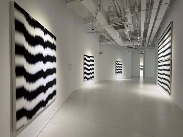 而“结构·波”系列是真正意义上空间的绘画,虽然它呈现在画布之上,但它通过视觉流动带来的动力,是画框的四边无法限制的巨大能量扩张。正如你提出的“无穷动”一样,它在空间中不断制造出新的视觉空间,以及回旋在我们周围的余音缭绕感受,在心理上产生新的流动空间。