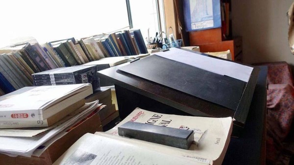 最近,在老马书房里,又见到了这块写字板,我对它的亲切感,一定是超过其他人的。《蒙田全集》厚厚四本,七年的时光,就是在这一块写字板上,一字一字从原文翻译为中文。如果向前追溯,那么这块写字板大约见证了老马的所有译著了。在旧居,老马的写字台是面窗,如今的新居,其实也已经乔迁近二十年了,还是面窗,并且窗外是数百米开阔的一览无遗,马路、小楼、花园在几十米之下的地面交错。如今高楼很多,但是窗外视野开阔很少。老马在与蒙田神交之时,难免“头皮发麻”,也就起身,或是远望,或是俯瞰。忽而,一个灵感飞进窗口,头皮不麻了,又开始了和蒙田相隔四百多年的错时代对话。去做客的那天,老马打开iPad给我们看他拍的窗外照片,还给我们讲底下小洋楼的往事传奇。我看到过些许采访过老马的文章,都写到了老马家里窗外景致。我在想,这窗外的景致,也应该算在《蒙田全集》翻译过程中的元素了。