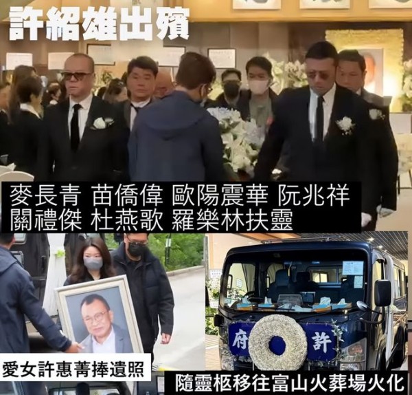 许绍雄出殡女儿捧遗像,佘诗曼哭到眼红肿,苗侨伟欧阳震华扶灵柩