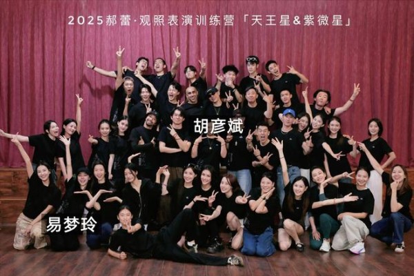 今年9月,有健身博主发了郝蕾表演训练营的合影,照片里就有易梦玲和胡彦斌。