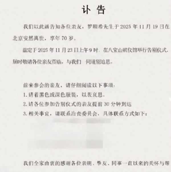 罗晋父亲罗顺希去世享年70岁,告别仪式23日举行