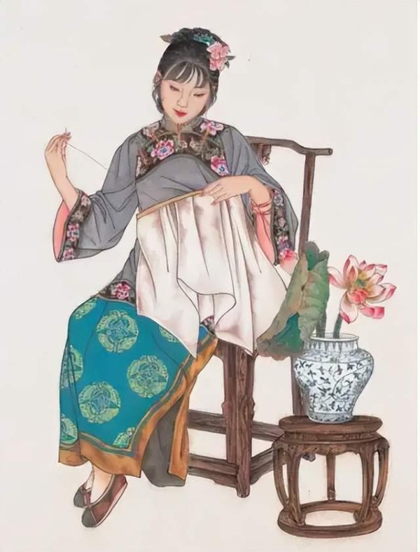 宝玉进来,只见地下一个丫头吹熨斗,炕上两个丫头打粉线,黛玉弯着腰拿着剪子裁什么呢。宝玉走进来笑道:“哦,这是作什么呢?才吃了饭,这么空着头,一会子又头疼了。”黛玉并不理,只管裁他的。有一个丫头说道:“那块绸子角儿还不好呢,再熨他一熨。”黛玉便把剪子一撂,说道:“理他呢,过一会子就好了。”宝玉听了,只是纳闷。这里明显的写了黛玉和丫头在一起裁剪布料做衣服,这是袭人口中的“半年不拿针线”吗?