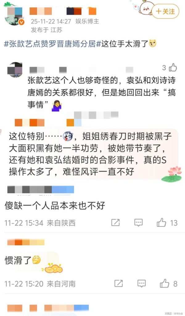 张歆艺被曝点赞罗晋唐嫣分居帖子!被扒曾针对刘诗诗!网友骂绿茶