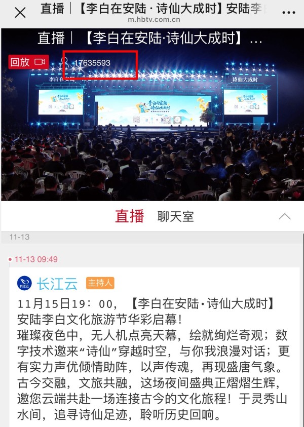 线上网友也纷纷留言表示“今晚的安陆太热闹!挤着看完全程,每一幕都精彩到舍不得眨眼”“为家乡的文化盛宴骄傲,安陆这波太有排面”;外地安陆老乡隔空感慨“隔着屏幕都被氛围感染,这波文旅盛宴太圈粉”“诗仙文化+科技呈现,看得心驰神往”。