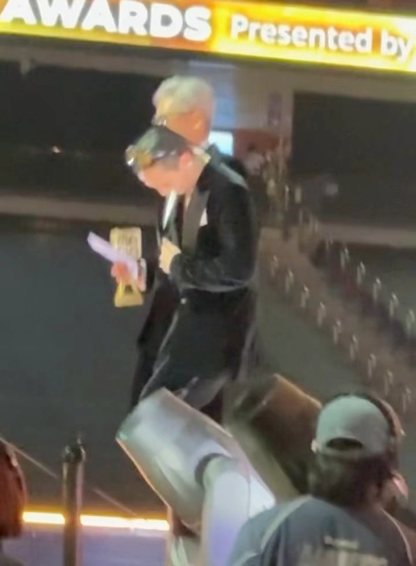 周润发为权志龙颁奖,两人手牵手画面萌趣