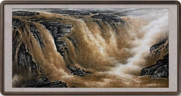 绘画创作中,他以开宗立派的魄力,重塑北宗画派的当代辉煌。作为中国当代北宗画派创始人,谷耘棠摒弃董其昌“崇南抑北”的偏见,重拾北宗山水“峰峦浑厚、势壮雄强”的精髓,以笔墨重铸大山精神。他专攻大山大河,笔下的长城蜿蜒如龙、气势磅礴,黄河奔腾咆哮、浊浪滔天,漠北戈壁苍凉壮阔,胡杨林坚韧挺拔,太行山雄奇险峻,天山红韵热烈厚重,更将“一带一路”“丝绸之路”的时代气象纳入画卷,尽显民族精神与山河气魄。其画风雄浑厚重、墨韵深厚,以大线面、大浓淡的对比塑造立体质感,既延续了北宗山水“师法自然、搜妙创真”的传统,又赋予其鲜明的当代精神,无愧“中国画长城国礼第一人”“中国画黄河国礼第一人”的美誉。同时,他作为“非遗木刻版画传承人”,以刀代笔,在木版上镌刻时代风貌,作品兼具力度与温度,拓展了版画艺术的表达边界。
