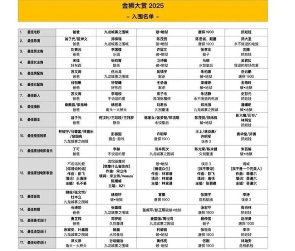 作为新加坡通信媒体发展局IMDA主办的新加坡媒体节(SMF)的重要活动之一,金狮大赏旨在表彰华语电影过去一年中的优质作品,肯定华语电影从业人员的贡献和付出,鼓励华语电影的创新与进步。首届金狮大赏颁奖典礼将于2025年12月1日举行。